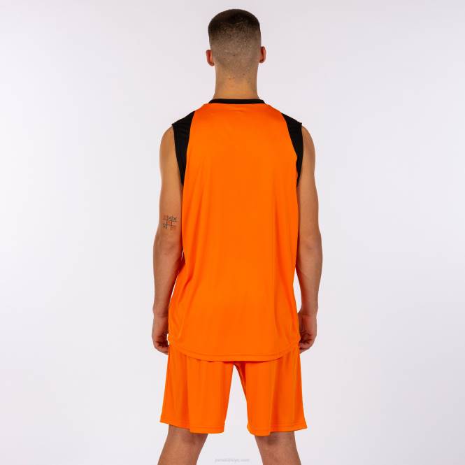basketbol için uygun t-shirt ve şorttan oluşan takım. t-shirt hafif kumaştan üretilmiş, kolsuz ve hareket özgürlüğü sağlamak için v yakalıdır. şort, bel ipli ayarlanabilir elastik bel bandı içerir.