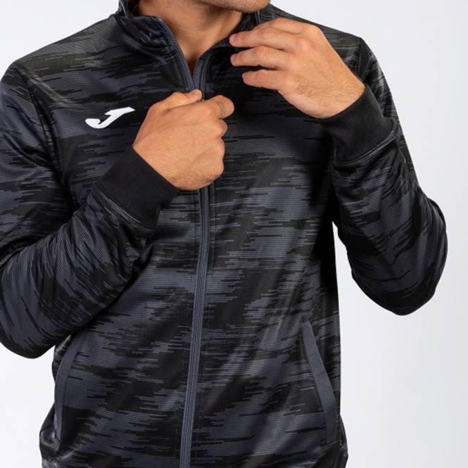 tam fermuarlı açık ceket. Mükemmel bir uyum için cepleri ve nervürlü manşetleri ve beli vardır. Daha fazla konfor için peluş iç kısım. basılı logo.