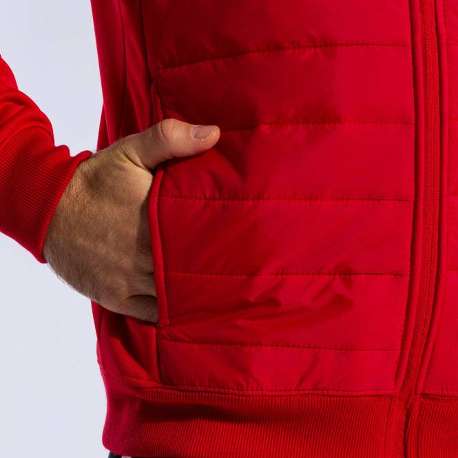 ortadan fermuarlı sweatshirt. Daha iyi oturması için manşetlerde ve etek ucunda cepler ve elastik nervürlü. ön kısımdaki naylon dolguyla dikkat çekiyor.