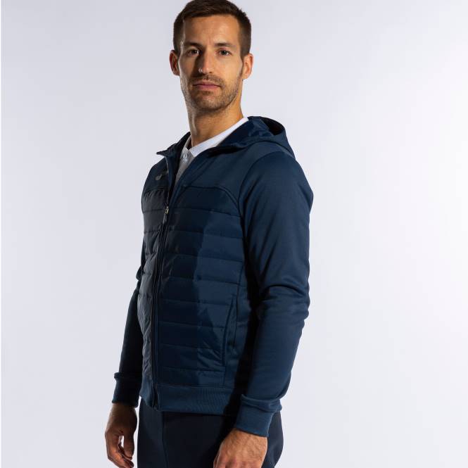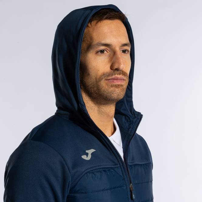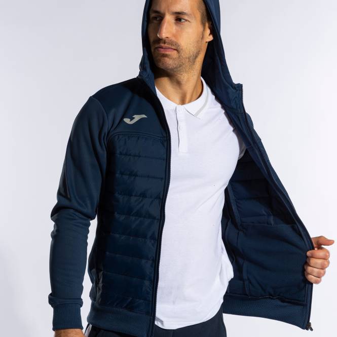 ortadan fermuarlı sweatshirt. Daha iyi oturması için manşetlerde ve etek ucunda cepler ve elastik nervürlü. ön kısımdaki naylon dolguyla dikkat çekiyor.