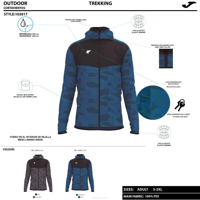 dış mekanlar için erkek yağmurluğu. kilitlenebilir bir fermuar ve teri dışarı atmaya yardımcı olmak için iç kısımda file kumaşlı kapüşon içermesiyle karakterize edilir. ayrıca üç cebe sahiptir: içleri polar kumaşlı iki açık ön cep ve anahtarları saklamak için kol üzerinde başka bir küçük cep. bu su geçirmez ceket, kapüşon, manşetler ve etek ucundaki elastik bantlarla ayarlanır. bu sayede soğuğa, rüzgara ve yağmura karşı tam izolasyona yardımcı olur.