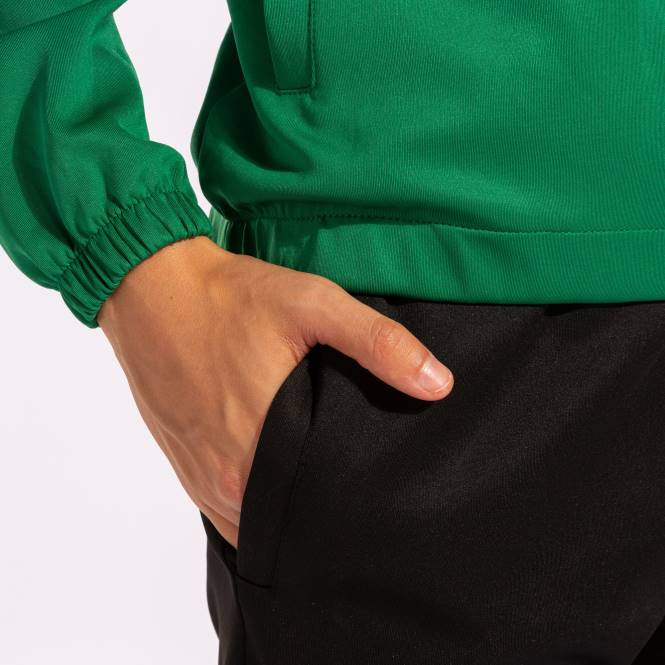 Yüksek yaka, fermuarsız cepli, kolları ve etek ucu lastikli ceket. uzun pantolon, bel ipi ve etek ucunda elastik manşetler ile ayarlanabilir bir elastik bel bandı içerir. fermuarsız cepler.