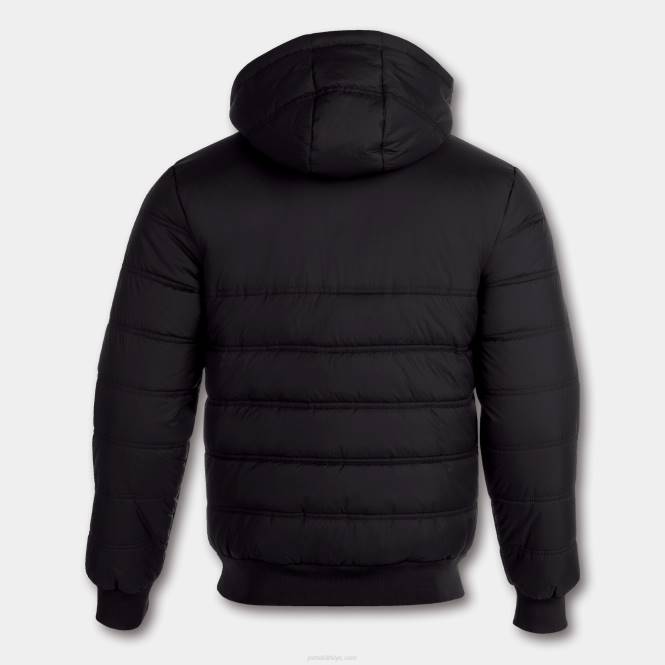 uzun yakalı, logo işlemeli bomber tarzı ceket. Bu giysi, ayarlanabilir elastik büzme ipli çıkarılabilir bir kapüşon içerir. aynı zamanda tamamı fermuarlı yan cepler ve ek iç cep içerir.