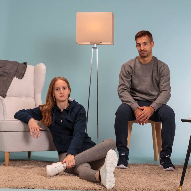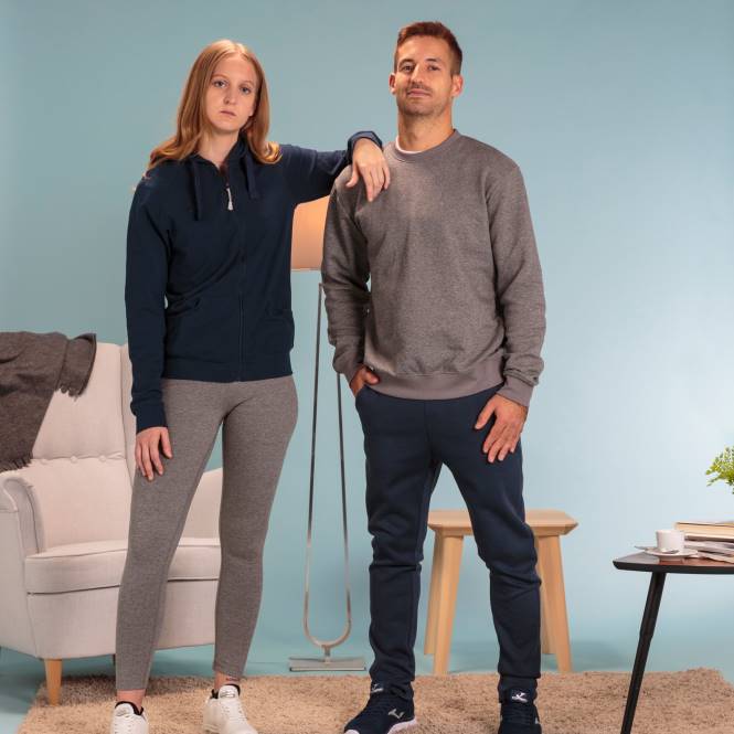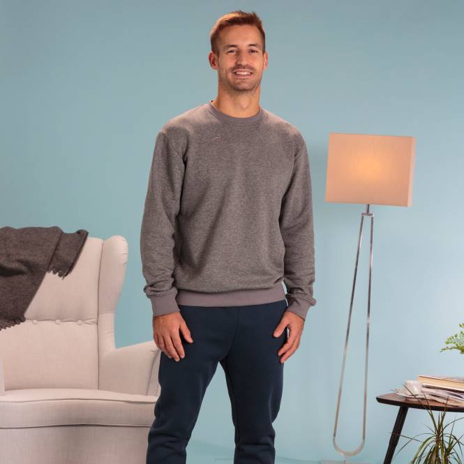 Yuvarlak yakalı, manşetleri, paçaları ve yakası ribanalı, logo işlemeli pamuklu sweatshirt.