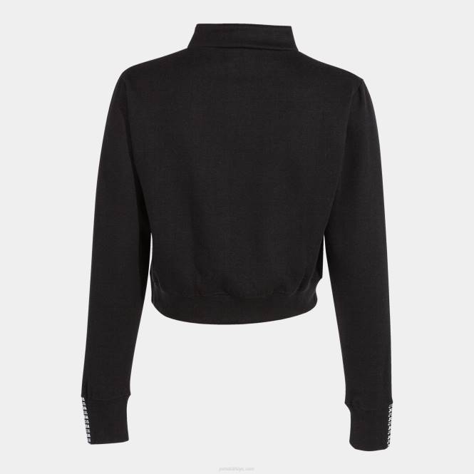 kadın kısa sweatshirt. daha rahat bir uyum için halka çekmeli fermuarlı, yüksek boyunlu ve nervürlü etek ucu ve manşetlere sahiptir. sporcuya yumuşaklık, rahatlık ve sıcaklık sağlayan iç kısmı pamuklu ve yünlü kumaştan yapılmıştır.