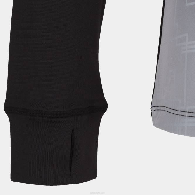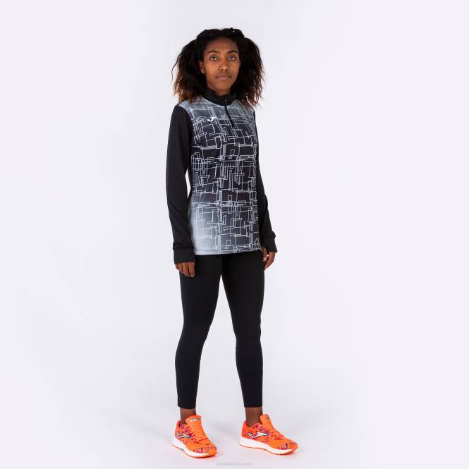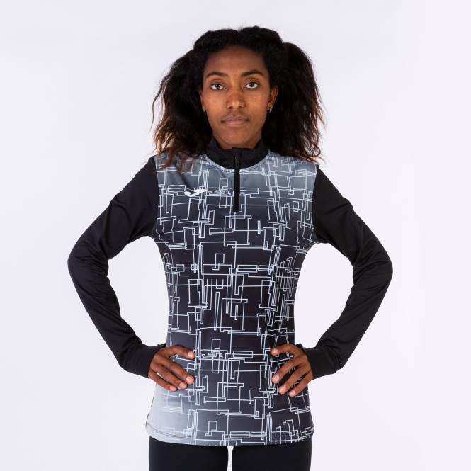 fermuarlıyken ayakta duran ve açıldığında güzelce katlanan yarım fermuarlı yakalı sweatshirt. manşetler elastiktir ve başparmak açıklıkları vardır ve giysi görünürlüğü artırmak için yansıtıcı ayrıntılar gibi ek özelliklere sahiptir.