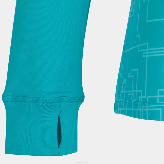 fermuarlıyken ayakta duran ve açıldığında güzelce katlanan yarım fermuarlı yakalı sweatshirt. manşetler elastiktir ve başparmak açıklıkları vardır ve giysi görünürlüğü artırmak için yansıtıcı ayrıntılar gibi ek özelliklere sahiptir.