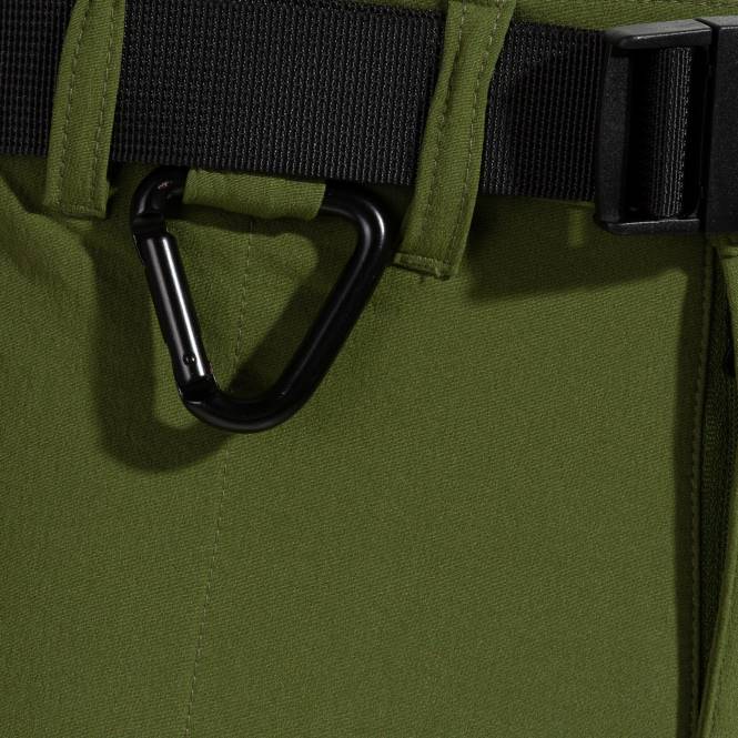 Pantolonun üst kısmı çıtçıtlı ve kilitlenebilir fermuarlıdır. giysiyi vücuda sıkı tutmak için çıtçıtlı bir kemer içerir ve ayrıca sporcunun güvenliğini veya mutfak eşyalarını taşımasını kolaylaştırmak için önde bir karabinaya sahiptir.