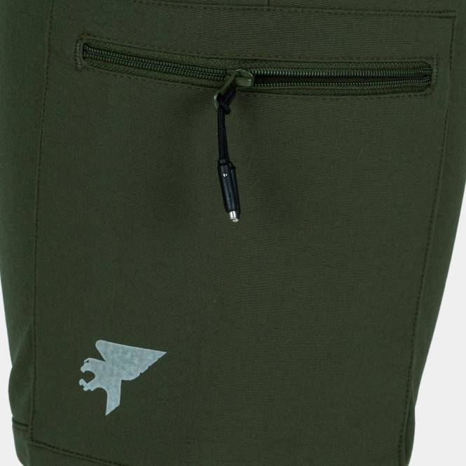 İçte polar kumaşlı klasik cepler, kargo cepler ve arka cepler; hepsi çektirmeli fermuarlıdır ve kilitlenebilir özelliktedir.