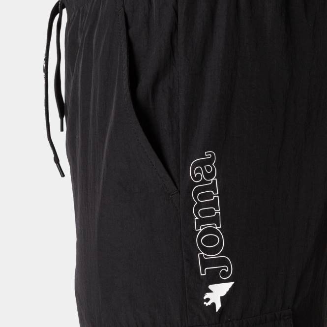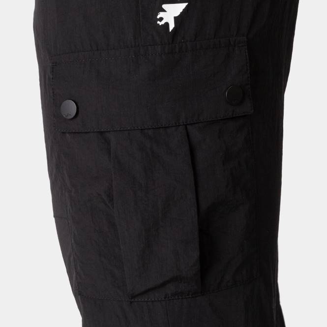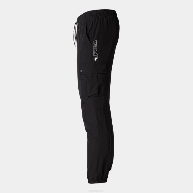 cepli, beli ayarlanabilir büzgü ipli pantolon. yan kargo cepleri ve fitilli manşetleri içerir.