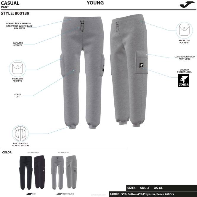 gündelik tam boy kadın pantolonu. stoperli elastik, büzme ipli ayarlanabilir bir bel içerirler. ayrıca belden de ayarlanırlar. iki klasik yan cep ve alt bacağın yanında iki kargo cep daha içeriyordu. pamuklu üretimi bu pantolonları yumuşak ve rahat hale getirir. aynı şekilde iç kısmı da atleti sıcak tutan polar malzemeden yapılmıştır.