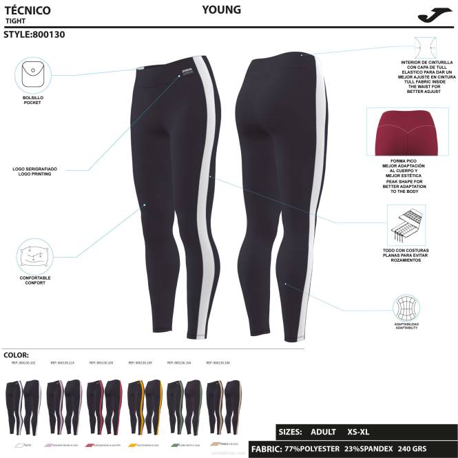 tam boy kadın taytı. Bu tozluklar, optimum uyum sağlamak için arkada bir tül tabakası ve V şeklinde bir elastik bel içerir. ayrıca arkada üst kısımda küçük bir iç cep bulunur. elastik bir kumaştan yapılmıştır ve sürtünmeyi önleyen kamalı düz dikiş sistemi ile tamamlanmıştır. bu şekilde sporcu maksimum konfor ve hareket özgürlüğünün tadını çıkarabilecektir.